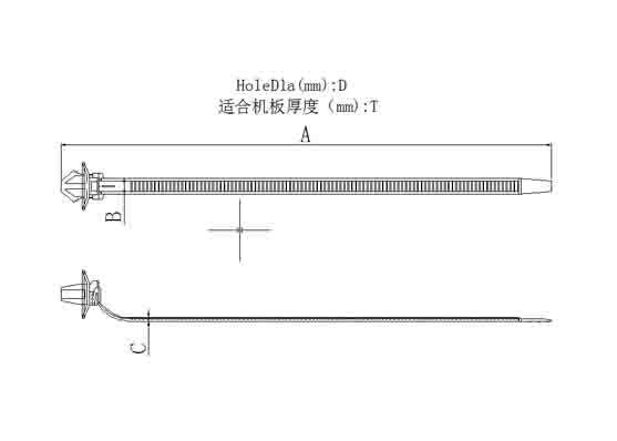 Part No. 型號 | Sketch Map 示意圖 | Length 長度A mm | Width 寬度B mm | Hole Dla 孔徑 mm | Panel Thickness 機板厚度 mm | Max.Bundle Dia 最大束徑 mm | Download 圖紙下載 |